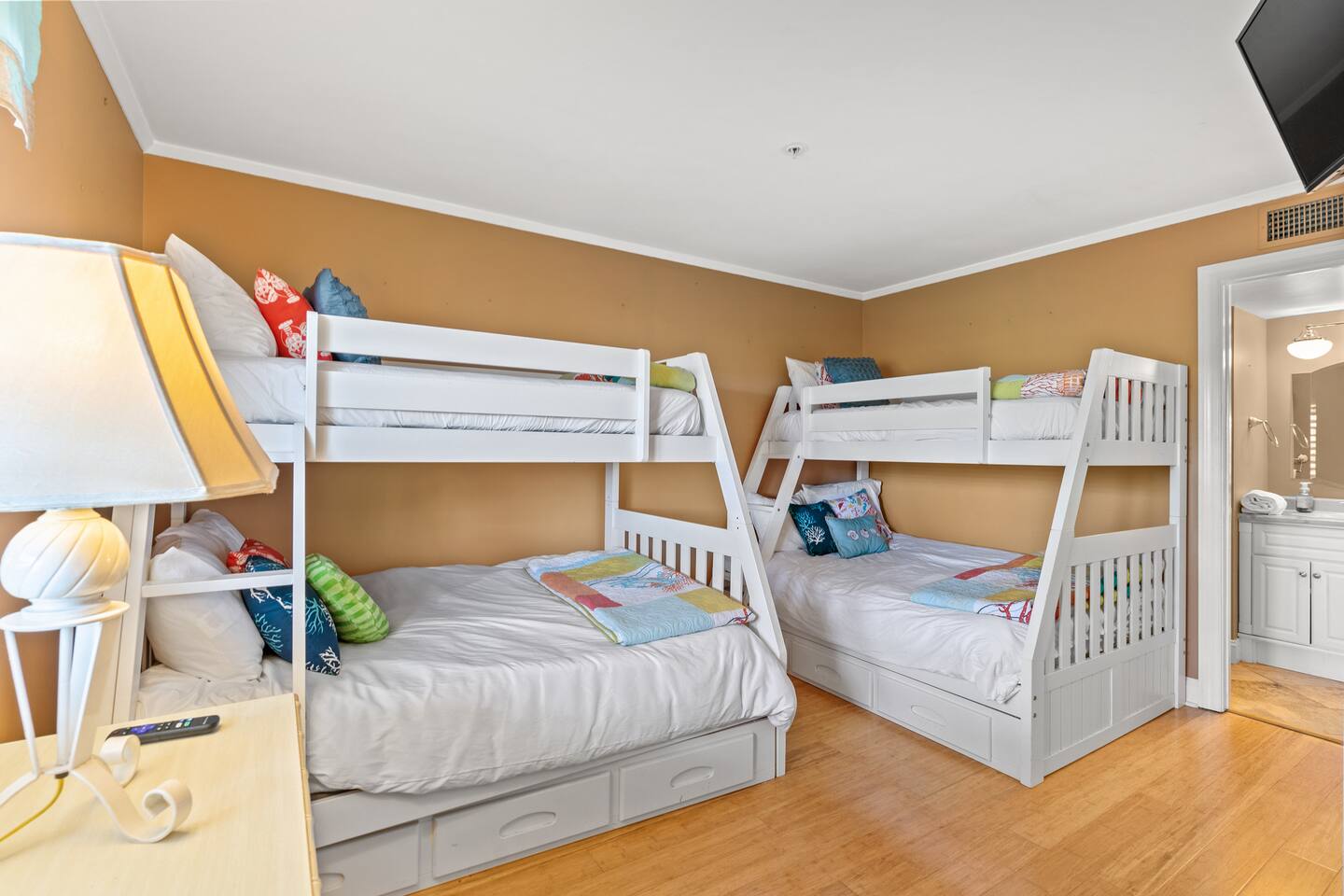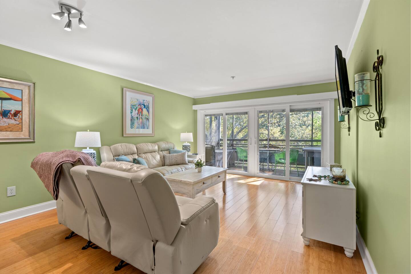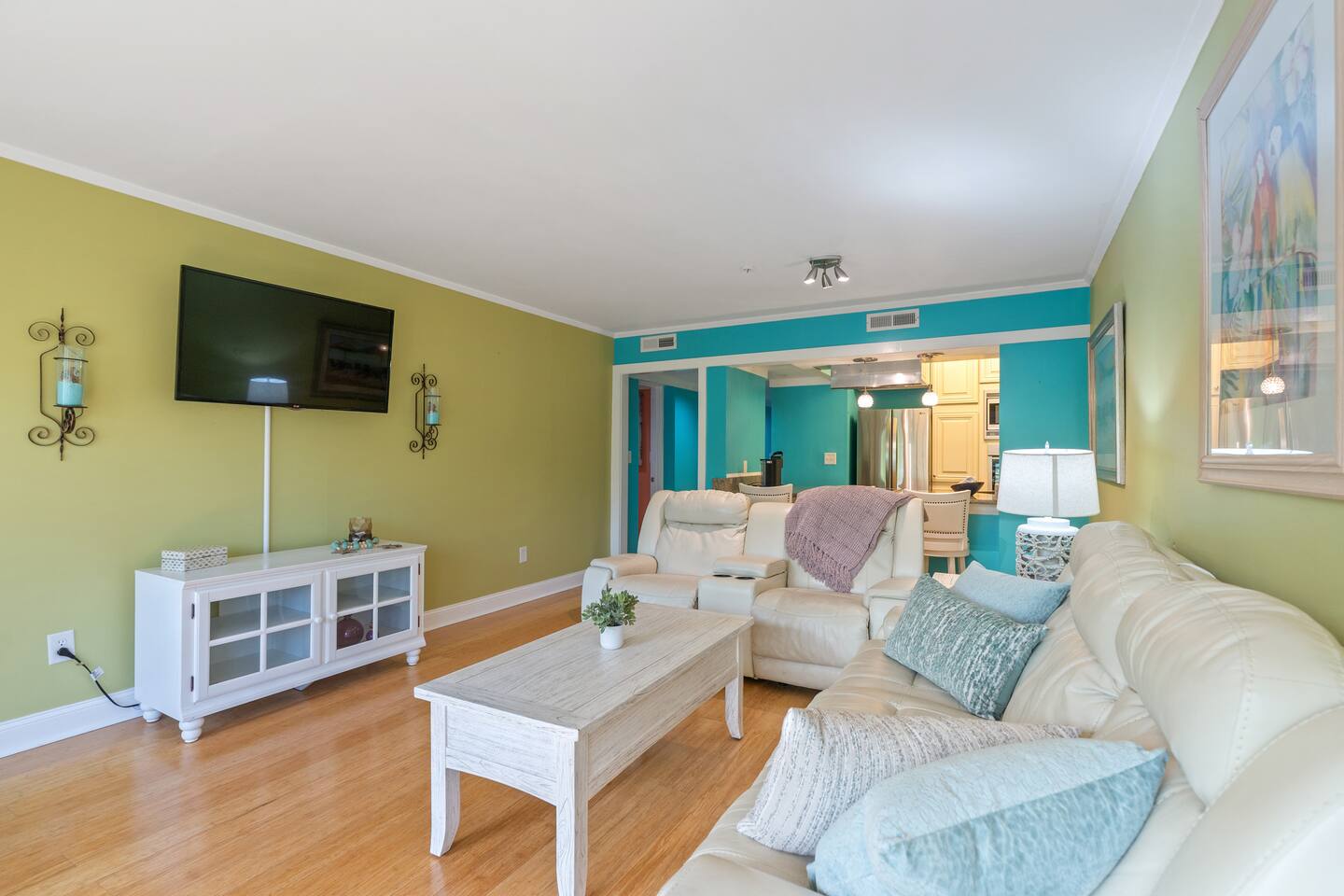 ** MESSAGE US ABOUT SPECIAL SNOWBIRD RATES! (stays > 1 month) ** Our beautiful condo is located in Lodge 1, which is just West of the Resort in a peaceful & scenic shaded area. We have ample space, perfect for a family or group up to 6 people! Enjoy a plush king size bedroom with an attached bathroom, and a large bunk room with 2 full and 2 twin beds with a full size bathroom. The spacious living room features comfortable, clean leather furniture, a SMART TV, new easy-to-adjust plantation blinds and a sliding glass door that opens to reveal a screened in porch that is nestled in the shade of gorgeous oak trees --perfect for enjoying your morning coffee or unwinding with a cocktail! The fully stocked kitchen has upgraded appliances, updated luxury countertops with island seating. The condo is located on the 4rd floor, with close access to the elevator. WHY STAY WITH US? *Skip the check-in lines! Check-in & check-out is a breeze with our privately managed property. We Offer convenient 24-hour arrival access & check-out with keyless entry. *We provide turnkey linens & amenities so you can head straight to the pool/beach instead of the store! Quality linens, sheets, and towels for all beds and baths provided, paper products, toiletries, etc. *We offer exclusive guest concierge services such as grocery pickup and fridge stocking, special occasion decorations, reservation services, mid-week tidy service, etc. UNBEATABLE RESORT AMENITIES: *4 min walk to the ocean with private beach access! *6 Outdoor pools! * A convenient tram that runs April-October around the resort with a stop next to the pool. *24-hour Security gate *Free hassle-free parking *Gorgeous grounds perfect for biking and walking *An on-Site Putting green *Tennis courts *Fitness center *Playground *Indoor Pool & Jacuzzi *Oceanfront Poolside Bar & Grille *Onsite Four Seasons Restaurant *Volleyball court To top it off, you are directly across the street from the famous Barefoot Landing on the waterway, which offers live music in season, shopping, dining, and endless family entertainment!