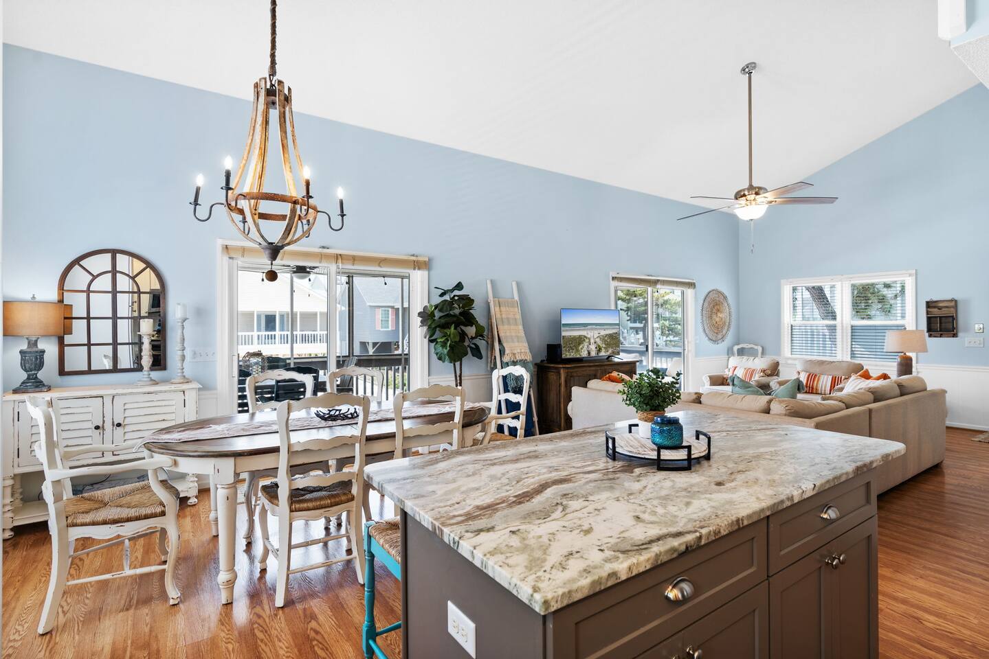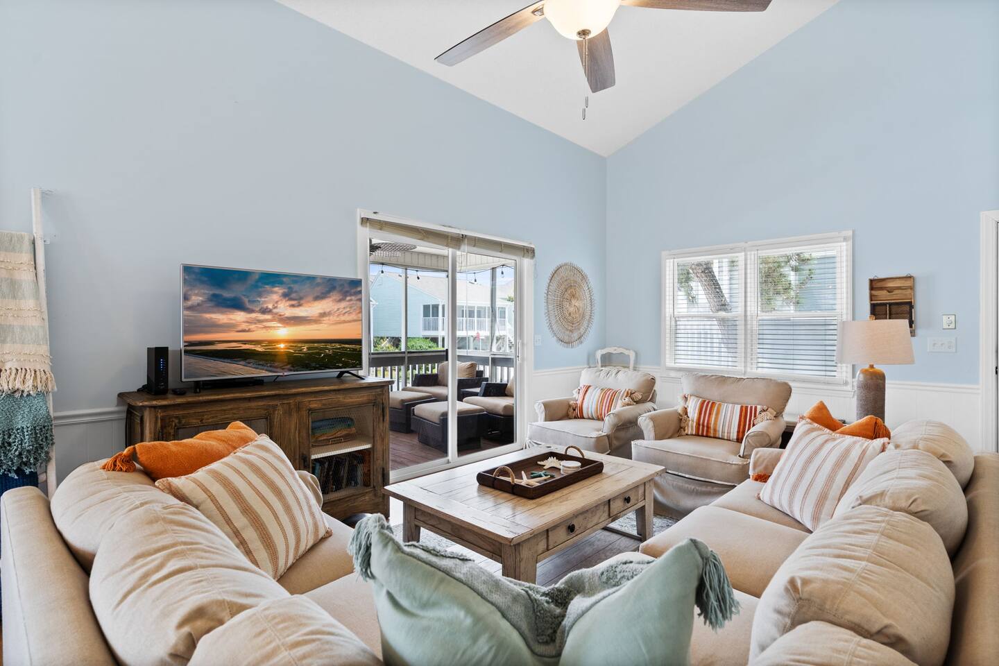 ALL LINENS INCLUDED, BIKES & AMENITIES GALORE! ACCESS TO 2 POOLS & 3 HOT TUBS! Your family will be just down the street from beach access! This newly renovated beach house has everything your family needs to have an unforgettable vacation! With 3 king size beds, twin & full bunk beds, and an open concept area that includes a spacious living room, dining area & updated kitchen connected to a serene screened in porch, this house provides lots of space to relax & spend time with loved ones!