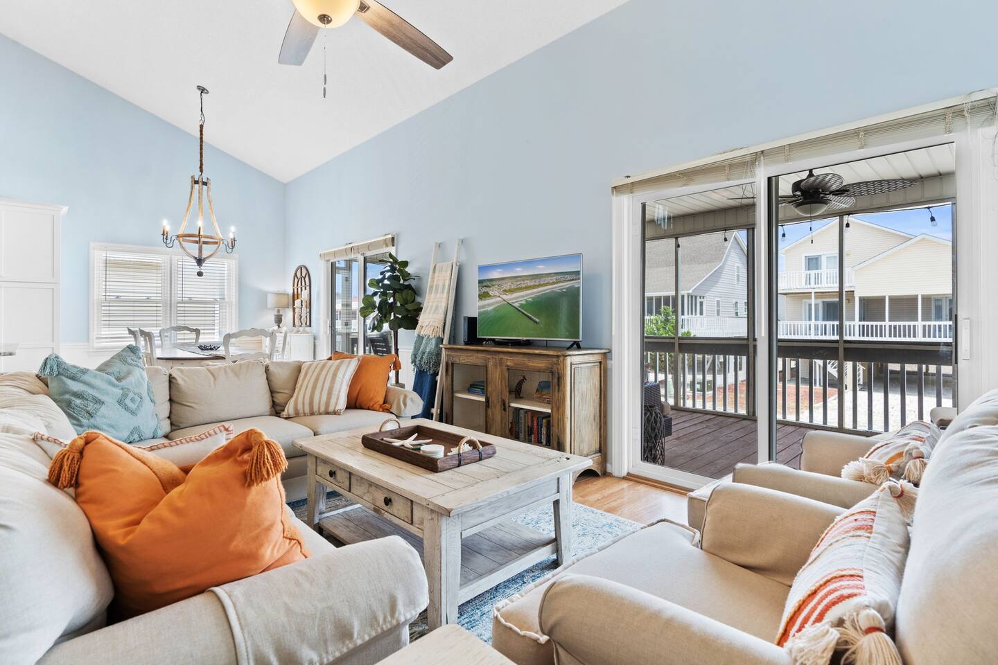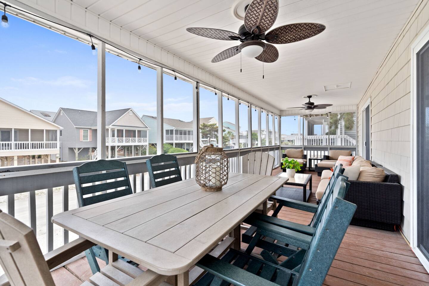Our favorite part about the house is the screened in front porch that flows right off the spacious living room and kitchen. Open the sliding glass doors on both sides and enjoy the beach breeze! Extensive Amenities Included: -Access to 2 pools, 3 hot tubs (1 open all year around), tennis & pickle ball courts, and fitness center in Sea Trail Resort 3 minutes away. We own 2 properties in the Sea Trail community, so our home comes with an owner's keycard that will get you access to all of these incredible amenities! -All (plush, white) linens included, including 8+ beach towels -Shampoo, Conditioner and Body Wash in Each Bathroom -Outdoor shower (stocked with shampoo, conditioner, and body wash) -4 beach bikes -Beach closet stocked with 2 beach wagons, umbrella, 8+ beach chairs, boogie boards, kid's beach toys, outdoor games, hammock to hang up on existing hooks, yoga mats (for Yoga on the Beach on Fridays!) -Lot of family friendly games -Fire pit and chairs in back of house (COMING FOR SPRING 2025 SEASON) -SMART TVs in EVERY ROOM -Sound machines in each bedroom -Phone charging cords (3+ cord types) in each bedroom -Pack N' Play, high Chair, baby monitor, sound machine, kid plates/cutlery -3 rolls of toilet paper in each bathroom + 2 rolls of paper towels, unlimited trash bags, dishwasher pods, dish and hand soap, and more! -Full stocked kitchen, including extensive spices, baking supplies, etc. -Access to exclusive guest concierge services during your stay (grocery pickup and put away, private chef, private car service, special occasion decorating, and more!)