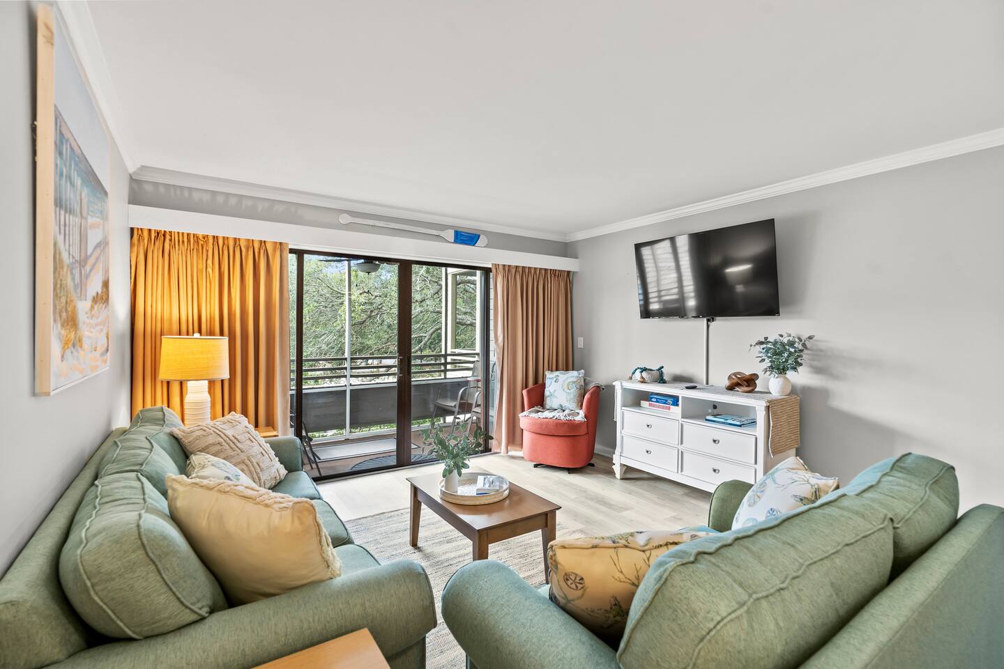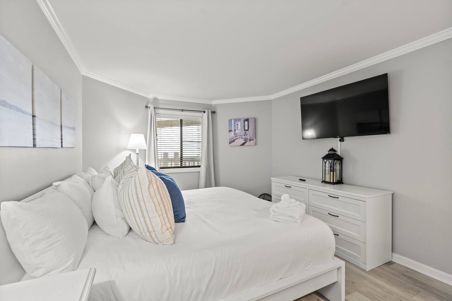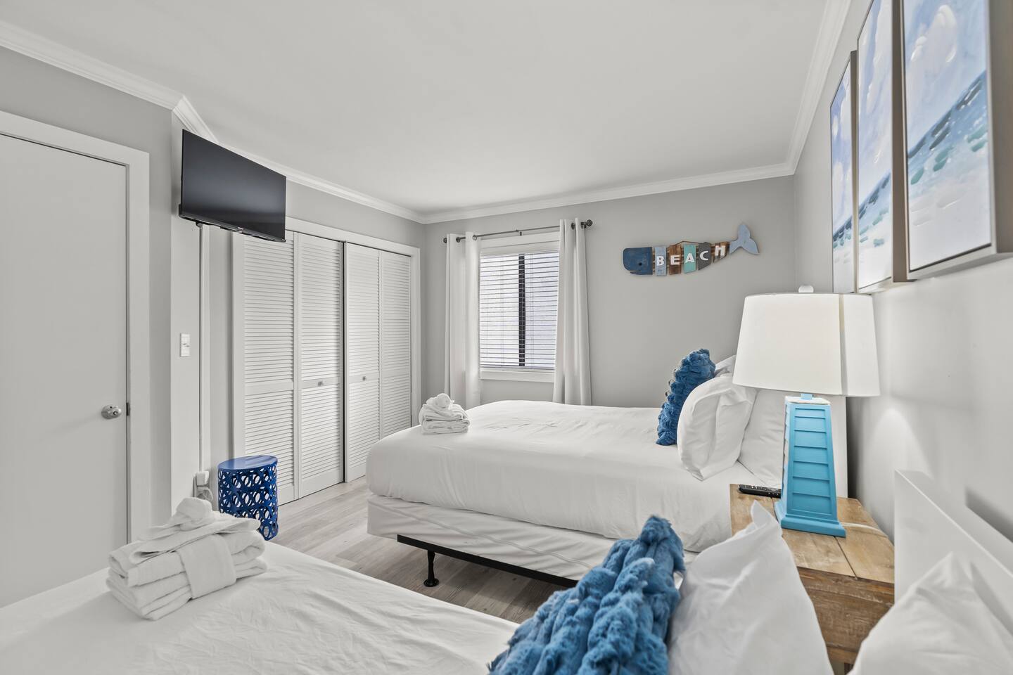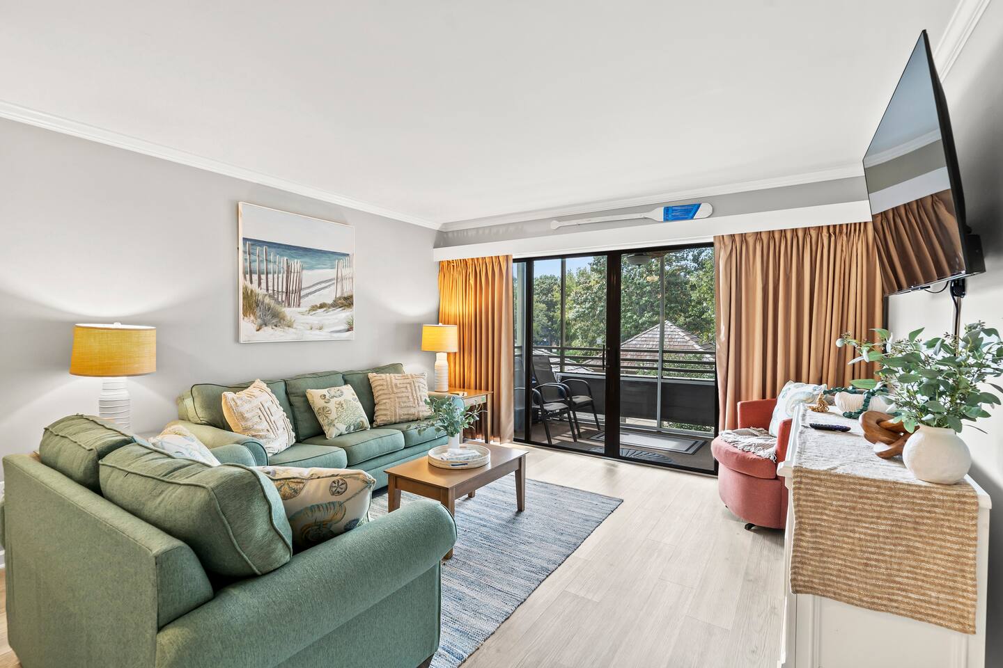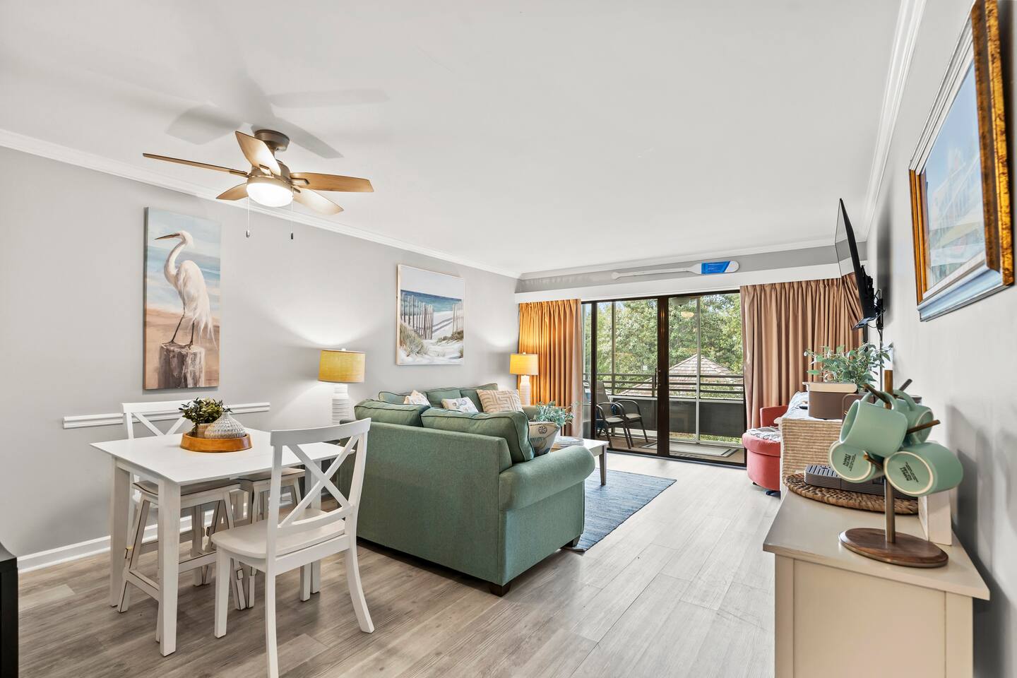 Our lovely condo is located in Lodge 4, nestled in a tranquil and scenic shaded area. Spacious and ideal for a family or group of up to 6 people, it features a plush king-size bedroom with an en-suite bathroom, a second room with a queen bed and twin bed, and a second full-size bathroom. The generous living room offers comfortable, clean furniture (including a sofa sleeper), a TV with Roku streaming, new black-out curtains, and a sliding glass door that opens to a screened-in porch shaded by beautiful oak trees--perfect for savoring your morning coffee or relaxing with a cocktail. The fully stocked kitchen includes everything you need to enjoy home-cooked meals, if you'd like. Located on the 2nd floor, the condo is conveniently close to the elevator. Why Stay With Us? • Skip the Check-In Lines! Enjoy seamless check-in and check-out with our privately managed property, featuring 24-hour arrival access and keyless entry. • Turnkey Linens & Amenities! We provide high-quality linens, sheets, and towels for all beds and baths, as well as paper products and toiletries, so you can go straight to the pool or beach. • Exclusive Guest Concierge Services! Benefit from services such as grocery pickup and fridge stocking, special occasion decorations, reservation assistance, and mid-week tidy service. Unbeatable Resort Amenities: - 4-Minute Walk to the Ocean! Private beach access just moments away. - 6 Outdoor Pools! Plenty of options for relaxation and fun. - Tram Service! Runs from April to October with a stop near the pool. - 24-Hour Security Gate! Ensuring your safety and peace of mind. - Free Hassle-Free Parking! Easy and convenient. - Beautiful Grounds! Ideal for biking and walking. - On-Site Putting Green! Perfect for golf enthusiasts. - Tennis Courts! Enjoy a game with friends or family. - Fitness Center! Stay active during your stay. - Playground! Great for children. - Indoor Pool & Jacuzzi! Relax and unwind. - Oceanfront Poolside Bar & Grille! - Enjoy food and drinks with a view! - On-Site Four Seasons Restaurant! Delicious dining options. - Volleyball Court! Fun for all ages. - Plus, you’re directly across the street from the famous - Barefoot Landing on the waterway, offering live - music, shopping, dining, and endless family entertainment!