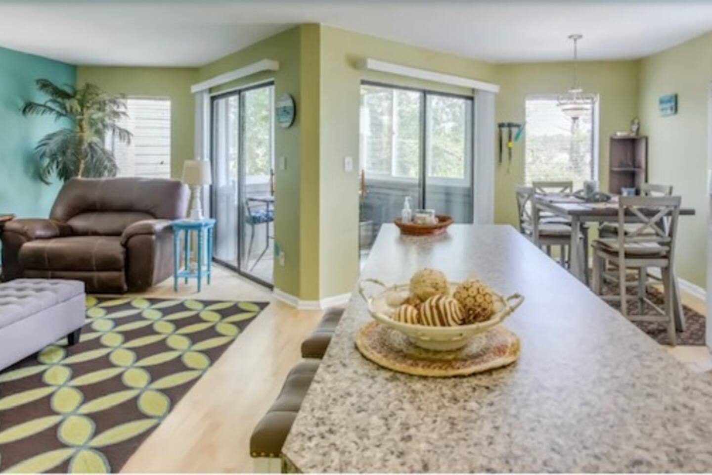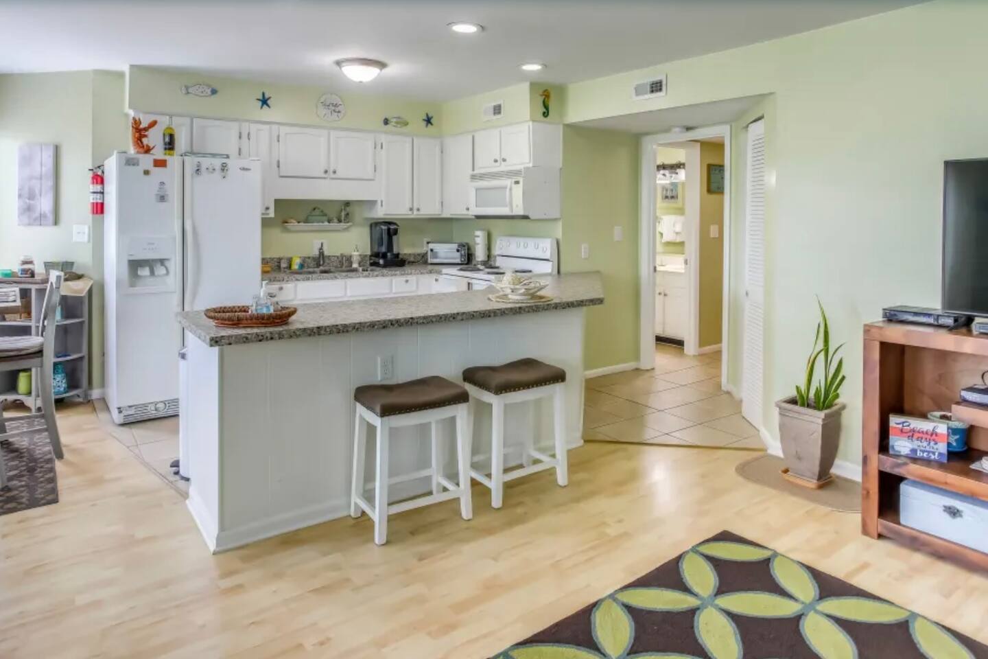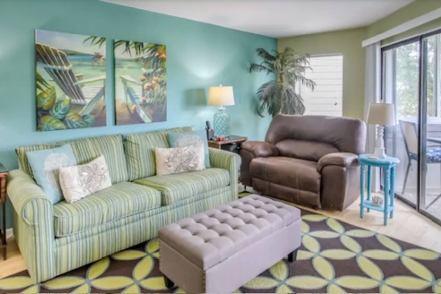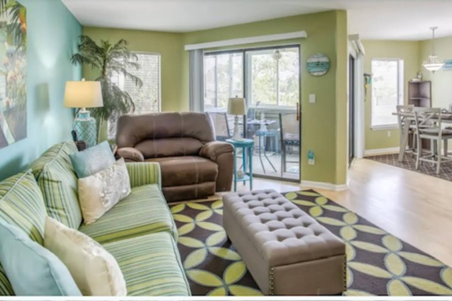 Bright, cheery, and perfect for your beach town getaway, this split, open, 2-bedroom 2-bath condo in the Golf Glen Villas is an exceptional find. Less than one mile from the beach, it's located near restaurants, activities, and shopping. The sparkling pool and fire pit in the center of the complex are perfect for relaxing. Eat-in kitchen is fully equipped. Cozy screened in balcony is accessible from the 2 sliding doors. Free parking. Elevators and stairs make the 2nd story easy to access.