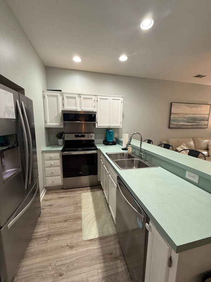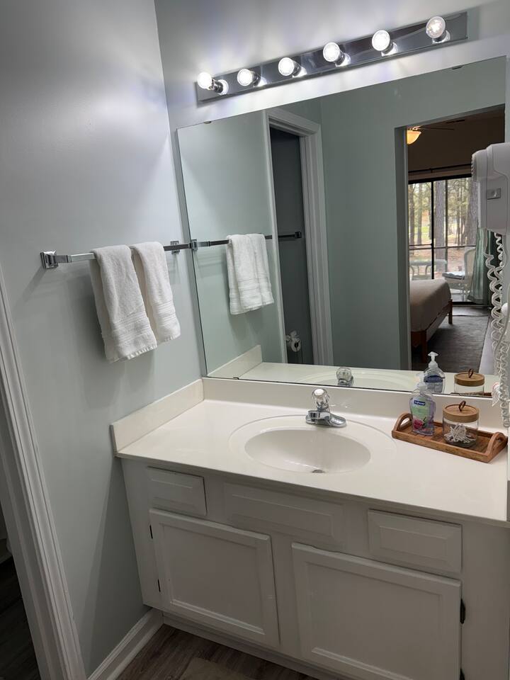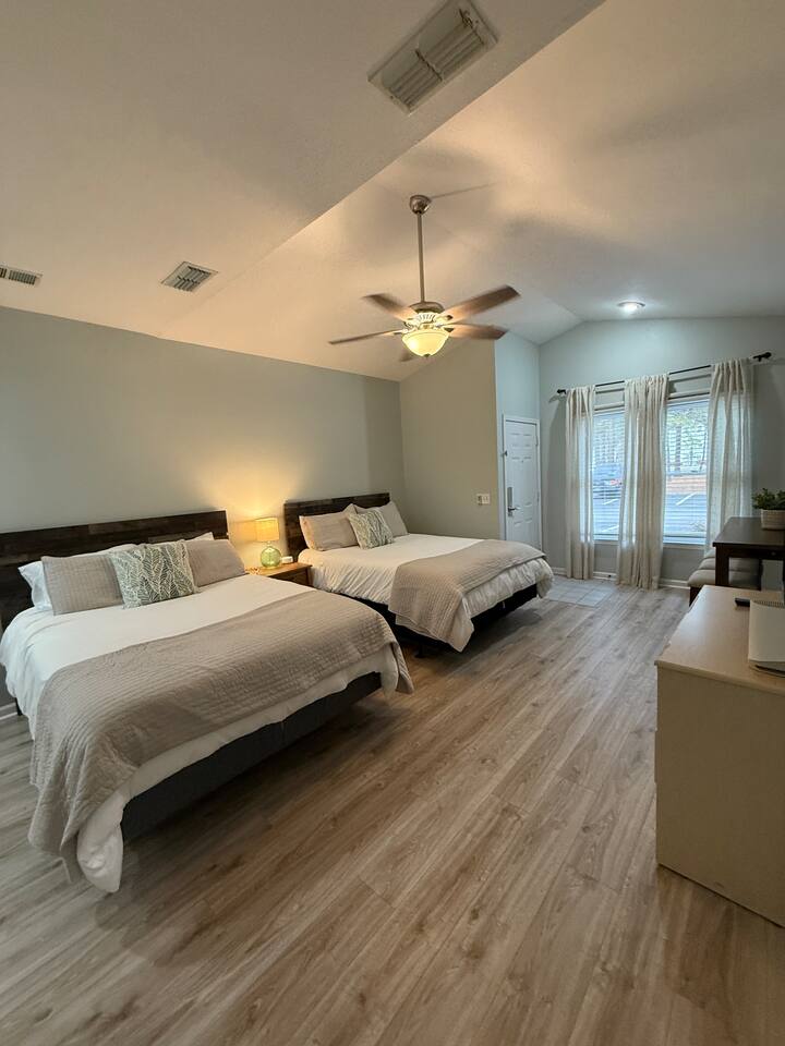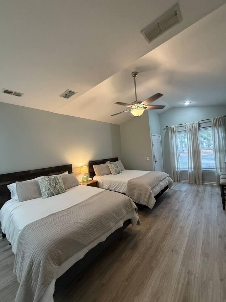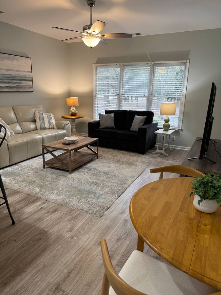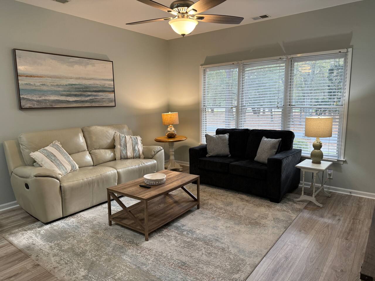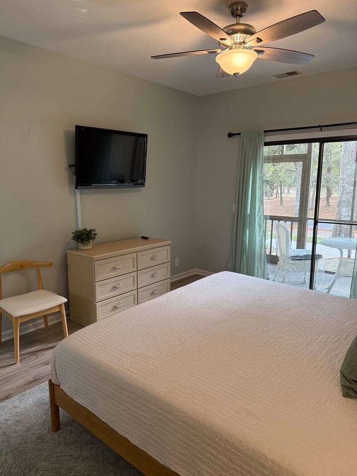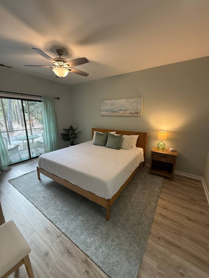 🛏 Sleeping Arrangements: Master Bedroom: Brand new king-sized bed, spacious layout, and ensuite bathroom. Lockout Mini Suite: A private retreat with two queen beds, its own kitchenette, full bathroom, desk/workspace, and private entrance — perfect for multiple couples or those needing a little extra space. ☀️ What You’ll Love: *Ground-level access (no stairs!) *Short walk to 1 of the two heated pools at the resort (Opened March 15th for the season!) *Access to 3 hot tubs (1 indoor is open all year around!) *Pickle ball and tennis courts *Quiet Golf Course Setting with 3 Championship Golf courses offering 54 Holes of Golf, Driving range and Club *Resort Fitness Center (newly updated) *Resort Sauna *FREE BEACH PARKING w/ access to the Sea Trail Owner's Parking Lot * Screened-in porch * 65" SMART TV in living room + SMART TVs in both bedrooms * Beach gear & sports equipment provided via outdoor closet (2 beach chairs, umbrellas, boogie boards, pool floats, 4 pickle ball paddles & balls, assorted games) * Washer and Dryer * Luxury white towels and bed linens are provided + Beach towels * Many premium amenities provided --(shampoo, conditioner, soap, charging stations, sound machines in both bedrooms, 2 coffee stations, hair dryer, toilet paper, paper towels, trash bags, dish soap, laundry soap, garbage bags, and more!) * Fast Wifi *Resort library *Guest Concierge Services * Close to grocery stores, drug stores, and 2 onsite restaurants (PRIME & Bistro 55) * 1 mile to inter-coastal Waterway * Free parking outside your unit Have more than 6 people? Ask about our upstairs 1 bedroom Villa or our other 3 bed/3 bath townhome property walking distance from this one!